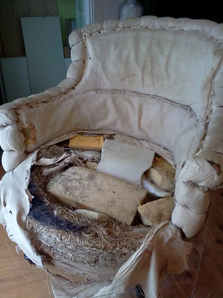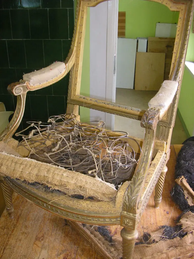 Pehme mööbli taastamisel kasutame algupäraseid materjale (püstvedrud, merihein, puitlaast, hobusejõhv, kotiriided, puuvilla- ja villavatid ja vatiinid).